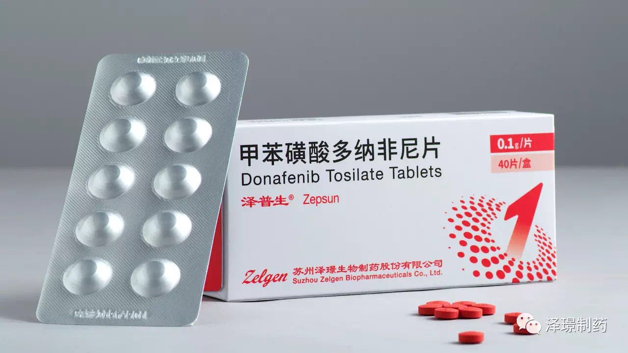 甲苯磺酸多纳非尼片是泽璟制药开发的口服多靶点、多激酶抑制剂类小分子抗肿瘤药物,属于1类新药,公司拥有独立的自主知识产权。临床前药理学研究证实,多纳非尼既可抑制VEGFR、PDGFR等多种受体酪氨酸激酶的活性,也可直接抑制各种Raf激酶,并抑制下游的Raf/MEK/ERK信号传导通路,抑制肿瘤细胞增殖和肿瘤血管的形成,发挥多重抑制、多靶点阻断的抗肿瘤作用。公司已向国家药品监督管理局(NMPA)提交了多纳非尼新药上市申请(NDA)。
